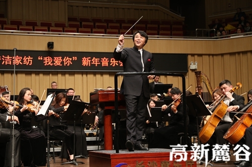高新麓谷2017年12月23日讯(陈丹妮)12月22日晚,由长沙高新区企业梦洁家纺主办、湖南交响乐团演奏的2018“我爱你”新年音乐会在长沙音乐厅举行,活动邀请了千位听众到场一起聆听爱的发声。 据记者了解,梦洁交响音乐会到今年已经举办了十二个年头。此次音乐会阵容强大,特邀到国内外优秀音乐艺术家助阵演出,阵容堪称豪华。由国家一级指挥、湖南省歌舞剧院院长、湖南交响乐团团长及首席指挥肖鸣,带领湖南交响乐团奏响爱的乐章。中央军委政治工作部歌剧团著名女高音歌唱家黄华丽,中国音乐家协会小提琴协会理事、中央音乐学院副教授刘霄,青年旅美钢琴家魏芸,中国歌剧舞剧院男高音歌唱家毋攀以及花腔女高音杨思思现场助阵演出。节目内容也是层出不穷,不仅有经典曲目《蓝色多瑙河》《梁祝》等,也有群众耳熟能详的通俗歌曲如湖北民歌《龙船调》、电影《芳华》插曲等,更有烘托节假日气氛的小提琴表演《铃儿响叮当》《平安夜》,活动现场气氛非常热烈,全场喝彩声持续不断。